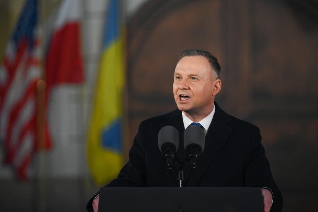 2023年2月21日,波蘭總統杜達在華沙發表講話。新華社發(阿列克西攝)