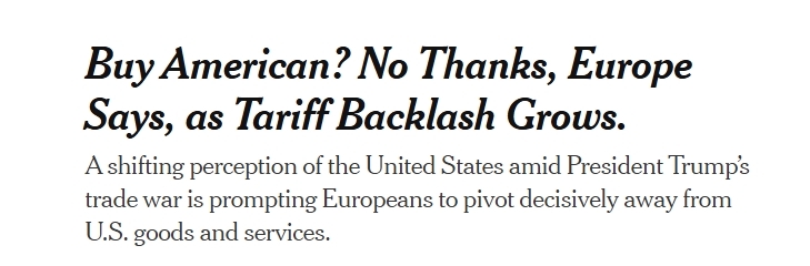 歐洲央行(European Central Bank,ECB)的最新評估顯示,在美國與歐洲貿易戰的緊張局勢下,許多歐洲消費者開始回避美國產品和服務,“不再購買美國貨”似乎是一次可能長期持續的決定性轉變。