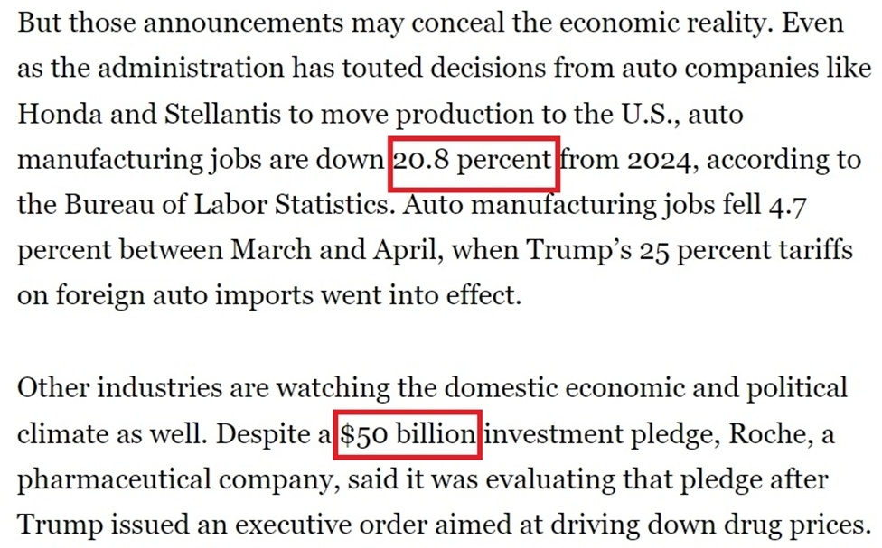 《政治報(bào)》的報(bào)道提到,在關(guān)稅政策深陷爭議的情況下,美國政府當(dāng)前非??释麑ν庹故尽懊绹?jīng)濟(jì)增長”的跡象,以至于一些公司只要口頭表示“考慮增加在美國的產(chǎn)能”就能得到白宮的贊賞。但現(xiàn)實(shí)卻是,許多白宮吹噓的企業(yè)投資計(jì)劃要么已經(jīng)籌備多年,要么被人為夸大,不少還可能在未來生變。