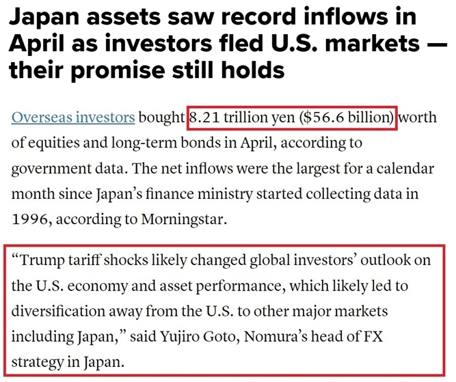 值得注意的是,在日本對美投資可能被“嚇退”的同時(shí),“逃離”美國的資金正大量涌向日本。