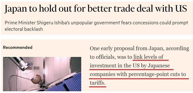 另據(jù)報(bào)道,考慮到日本是美國最大海外投資來源國,日方除考慮進(jìn)一步對美開放市場等讓步條件外,早期談判方案中還包括將美國對日商品關(guān)稅減免的百分點(diǎn)與日本企業(yè)在美投資水平掛鉤。