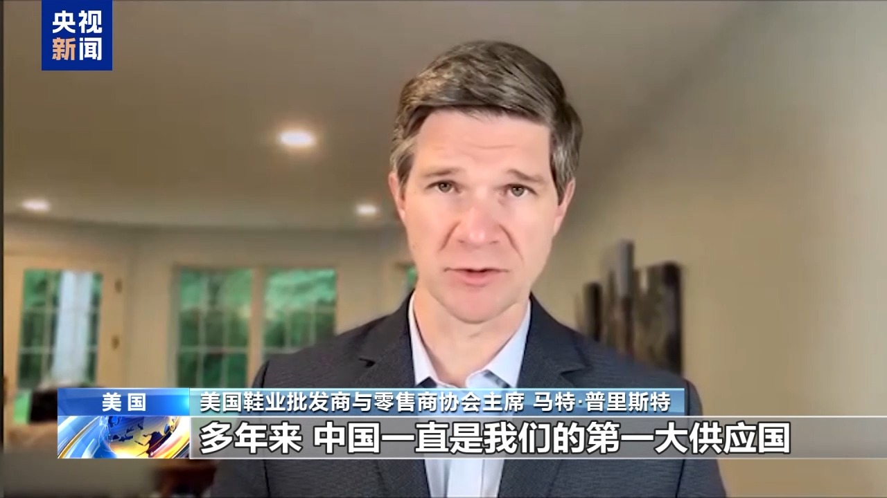 美國鞋業批發商與零售商協會主席 馬特·普里斯特:多年來,中國一直是我們的第一大供應國。