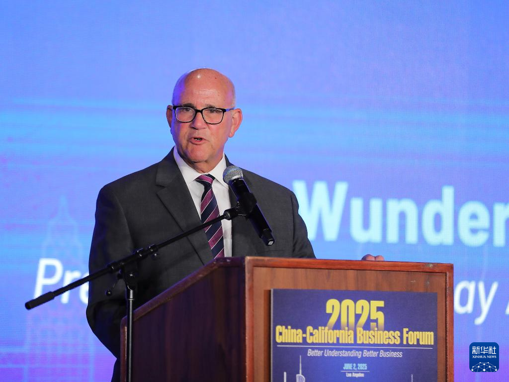 6月2日,在美國(guó)洛杉磯,舊金山灣區(qū)委員會(huì)主席吉姆·旺德曼在2025年中國(guó)—加州經(jīng)貿(mào)論壇上發(fā)表講話。新華社發(fā)(邱晨攝)