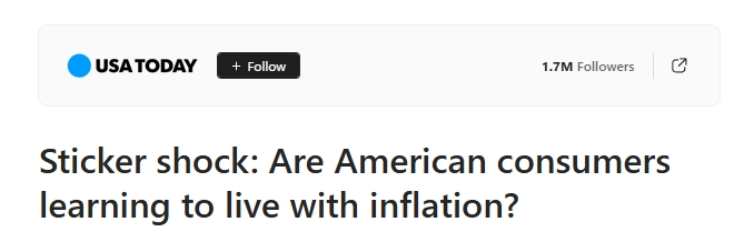 《今日美國》報網站近日報道稱,雖然蓋洛普一項民調顯示,認為通貨膨脹是自身最大財務問題的美國人比例有所下降。然而,其他調查結果卻表明,通貨膨脹依舊深深困擾著美國消費者。