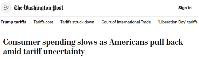 《華盛頓郵報》報道稱,由于美國政府的貿易戰持續引發經濟不確定性,目睹關稅風波的美國人已開始縮減開支。新數據顯示,美國人購買汽車和服裝時愈發謹慎。美國經濟分析局5月30日發布的數據顯示,本就顯疲軟的消費支出增長在4月顯著放緩,因為更多家庭在觀望關稅相關的不確定性將如何發展。