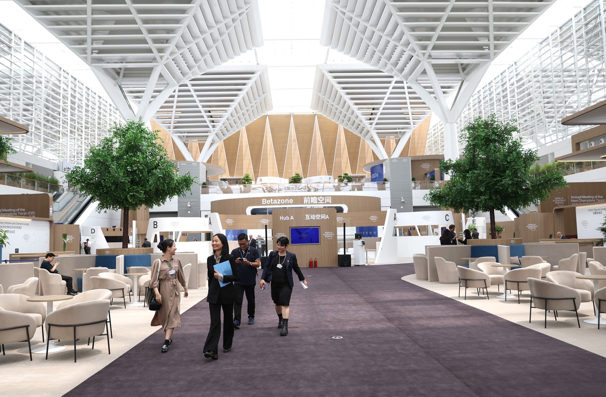 2025年6月23日,嘉賓在國家會展中心(天津)內的2025夏季達沃斯論壇新領軍者村交流。