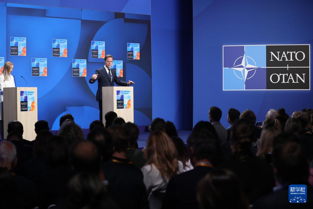 6月25日,在荷蘭海牙,北約秘書長呂特在北約峰會期間出席新聞發布會。新華社記者 趙丁喆 攝