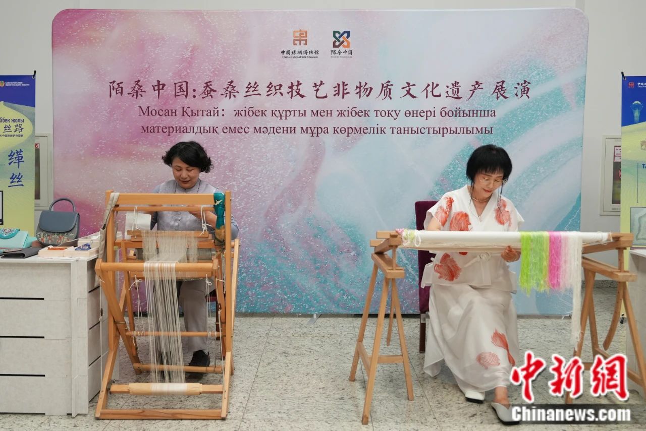 當地時間2025年6月16日,哈薩克斯坦“中國旅游年”開幕式在位于阿斯塔納的哈薩克斯坦國家博物館舉行。圖為手工藝者在非遺體驗活動中演示緙絲、臺繡等傳統技藝。 中新社記者 單璐 攝