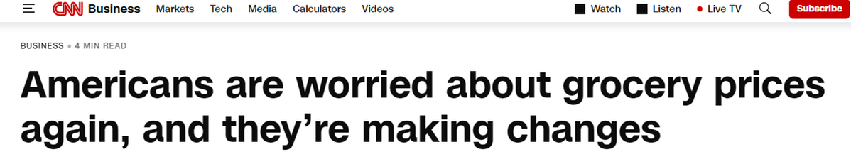 報道還指出,民調清晰地表明美國人對高昂的食品成本和經濟狀況倍感焦慮,他們的購物方式也因此出現巨大改變。這與眾多企業提到的情況一致,他們表示消費者正在調整購物模式,比如從購買大包裝改成買小包裝,只買生活必需品,更多地在家吃飯。