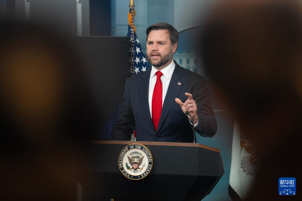10月1日,在美國首都華盛頓白宮,美國副總統(tǒng)萬斯回答記者提問。新華社記者胡友松攝