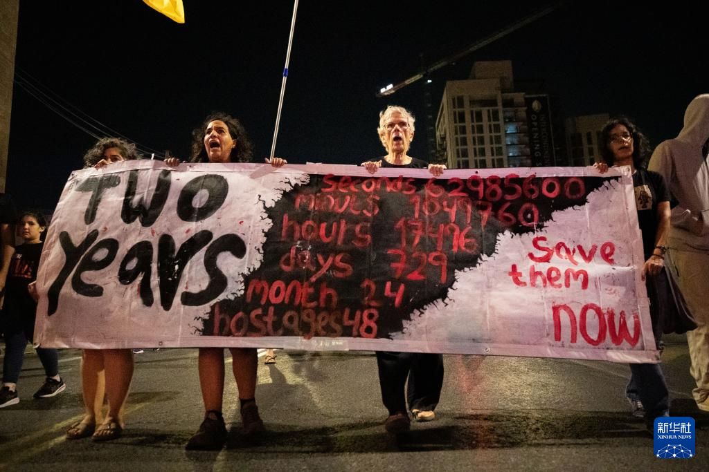 廣場上,巨大的電子計時牌顯示“733天11小時46分48秒”,那是新一輪巴以沖突延宕的時間。這個數字還在不斷累加……
