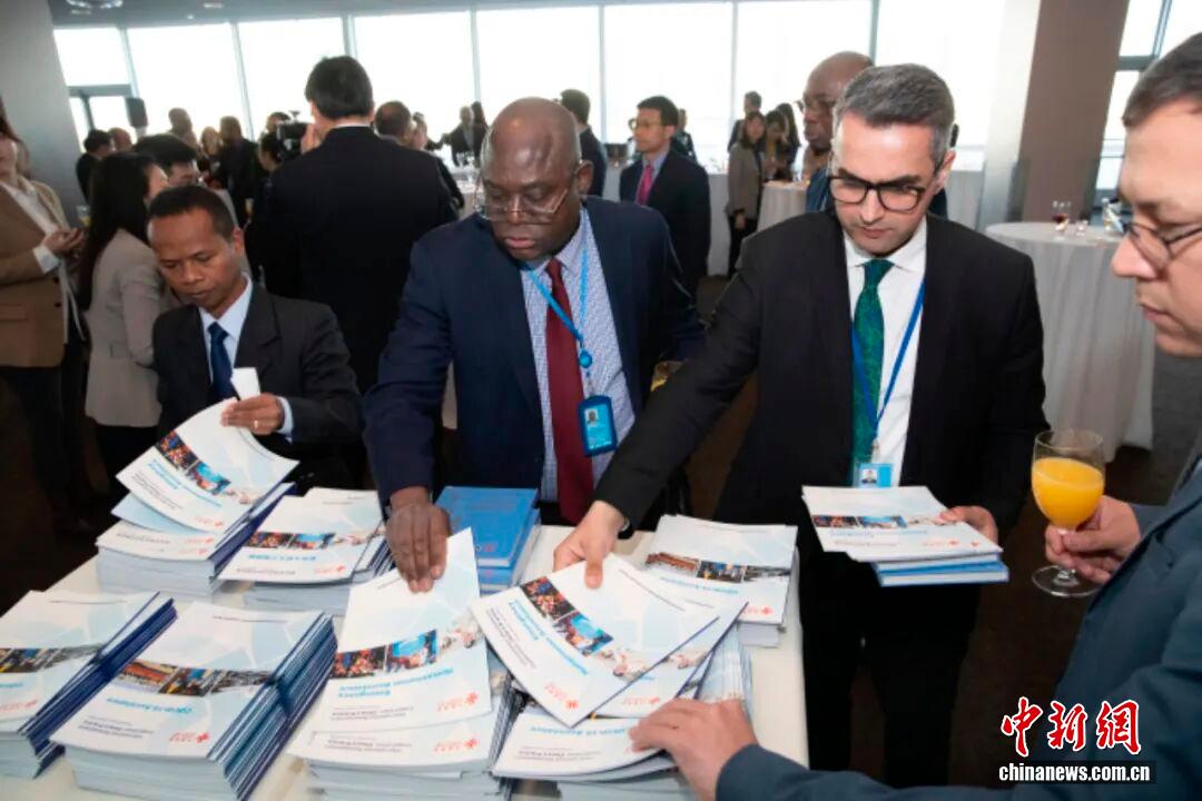 當(dāng)?shù)貢r間2023年4月19日,“全球發(fā)展倡議新進(jìn)展可持續(xù)發(fā)展議程新行動”主題展覽在紐約聯(lián)合國總部舉行。圖為與會嘉賓取閱國合署發(fā)布的新報告——《國際發(fā)展合作的中國實踐》。 中新社記者 廖攀 攝