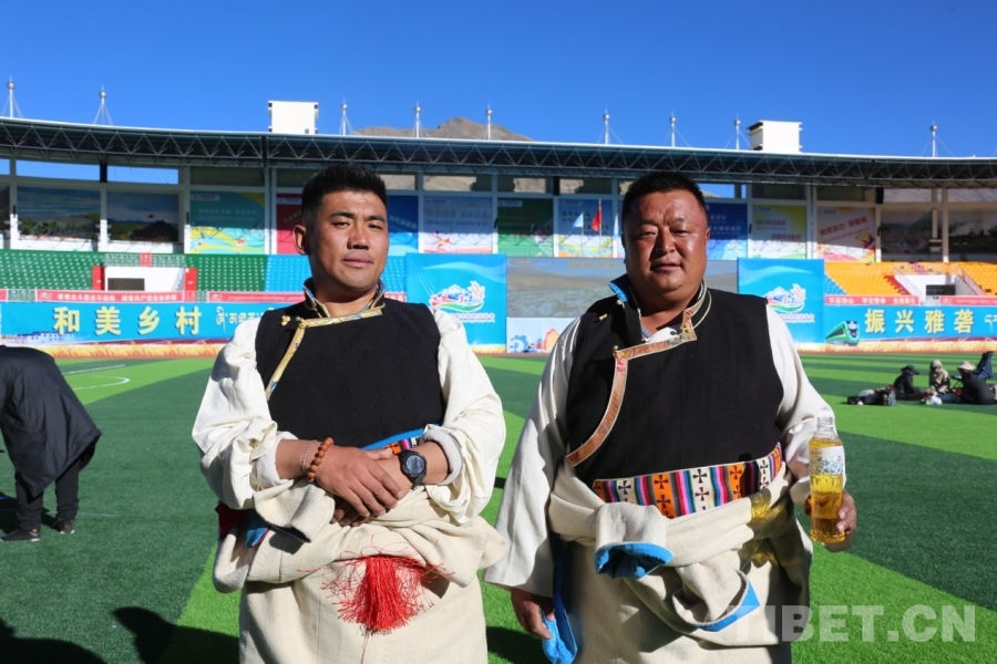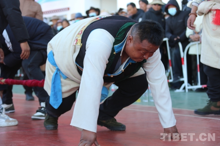 圖為山南市首屆農民們運動會押加比賽冠軍索朗巴珠(右一)