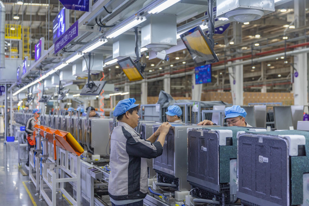 4月9日,在位于重慶市江北區的重慶海爾洗碗機互聯工廠,工作人員在生產線上作業。新華社記者黃偉 攝