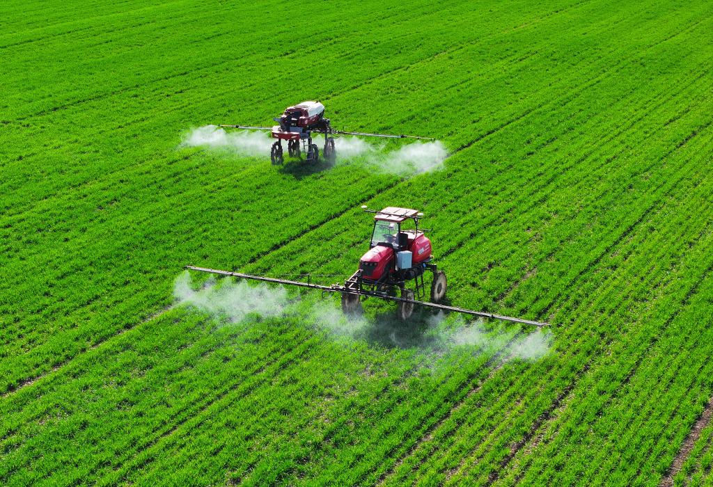 3月19日,自走式無(wú)人植保機(jī)在安徽省亳州市譙城區(qū)趙橋鄉(xiāng)雙樓村的無(wú)人農(nóng)場(chǎng)進(jìn)行除草作業(yè)(無(wú)人機(jī)照片)。新華社記者 杜宇 攝