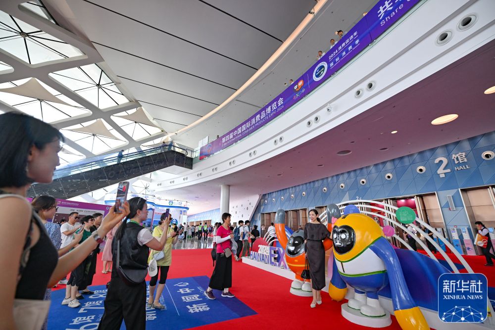 觀眾在第四屆消博會(huì)現(xiàn)場(chǎng)拍照留念。新華社記者王楚天 攝