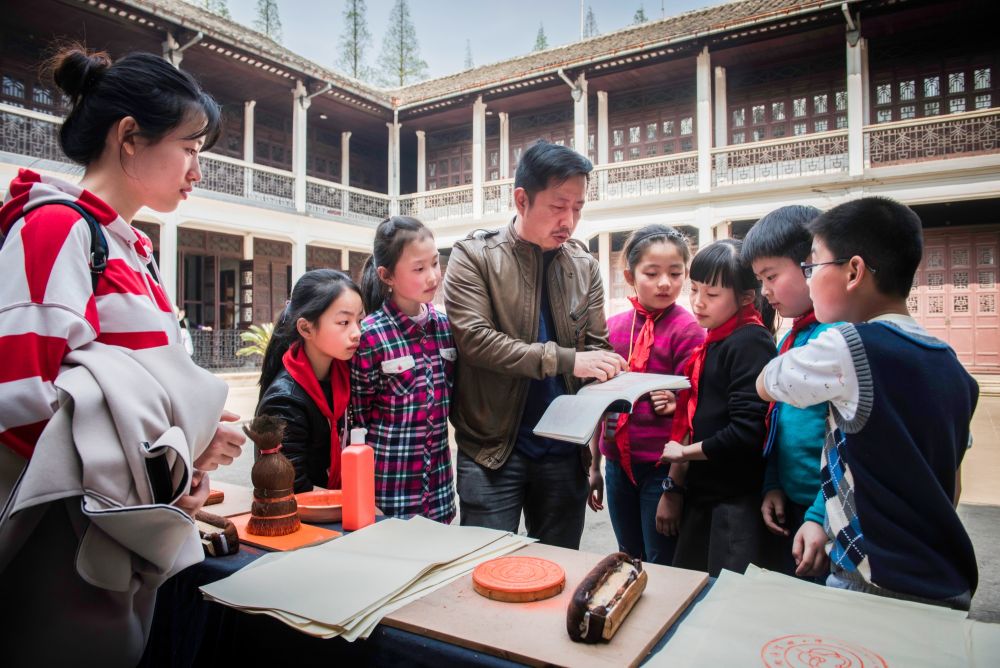 藏用之間,文字被喚醒。南潯實驗小學自2015年起與嘉業藏書樓合作建立雕版印刷傳習基地,讓雕版文化走進了校園,目前該校已培養了200多名雕版印刷的小傳人?!拔覀兿Mㄟ^學生走進來參觀,我們走出去講解,把藏書文化傳播得更廣。”鄭宗男說。