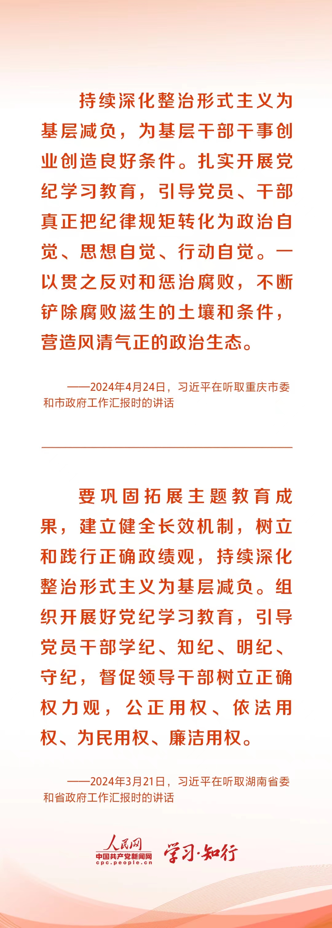 在新時代推動西部大開發座談會上,習近平再次明確,“鞏固拓展主題教育成果,抓好黨紀學習教育,持續整治形式主義為基層減負。”