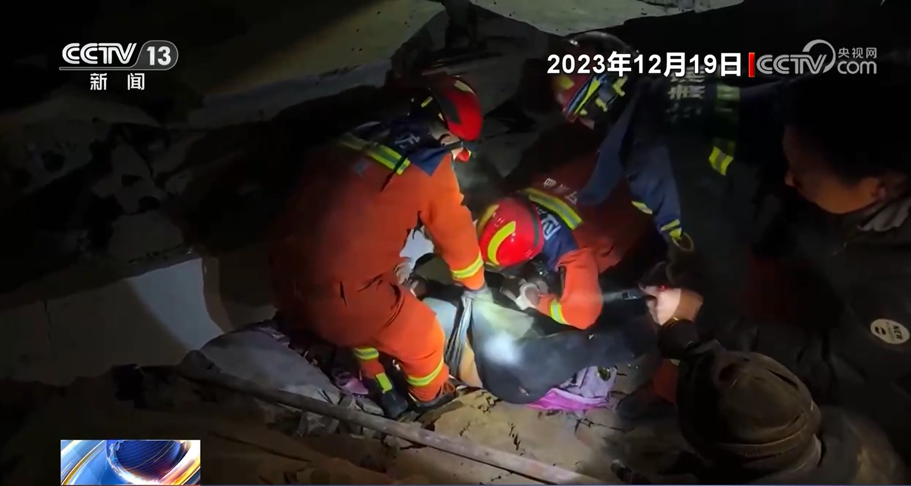 在大河家鎮康吊村,救援人員發現一家三口人被掩埋在廢墟中,其中一名婦女仍有生命體征。當晚當地氣溫已達到-15℃。嚴寒條件下,被困者的生存時間被大幅壓縮,如果不能及時救出,極有可能因為失溫而造成二次傷害。
