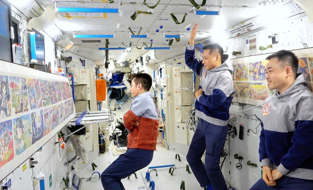 2024年2月23日,第三屆“天宮畫展”在中國空間站開展。神舟十七號航天員乘組在軌展示和介紹了新時代青少年暢想中國式現代化的美麗畫卷。
