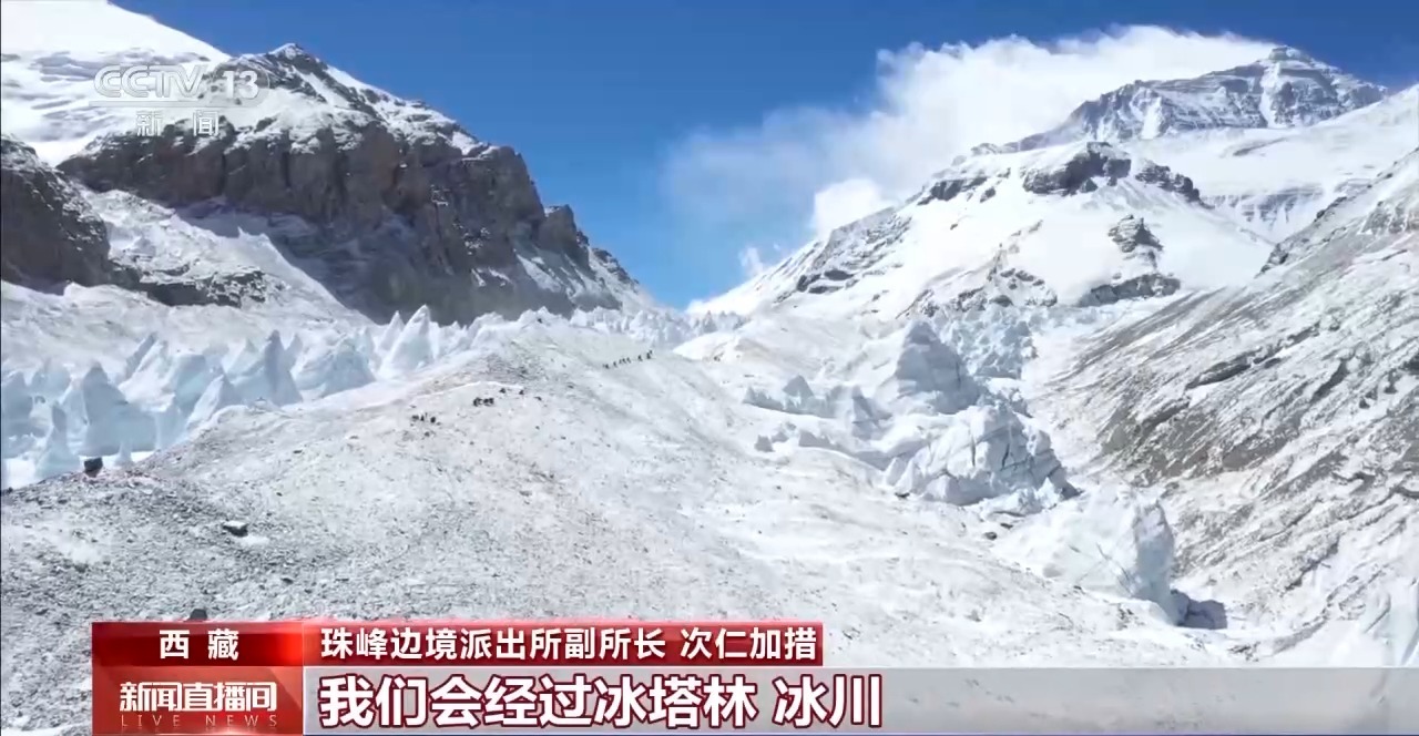 珠峰邊境派出所副所長 次仁加措:往里走的話我們會(huì)經(jīng)過冰塔林、冰川,穿越碎石灘,整個(gè)路途我們會(huì)花費(fèi)8到12個(gè)小時(shí),途中經(jīng)過老大本營,那個(gè)地方是最危險(xiǎn)的路段。
