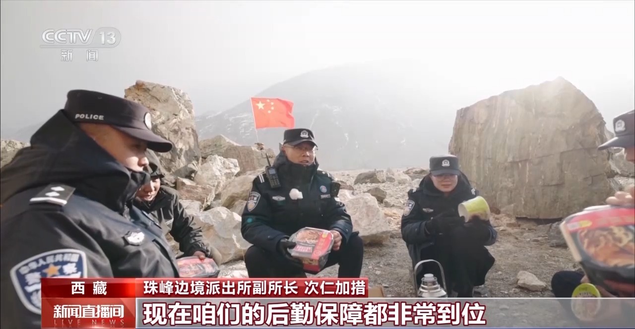 珠峰邊境派出所副所長 次仁加措:這里風(fēng)是挺大的。但咱們有“法寶”,就是高原上的火鍋?,F(xiàn)在后勤保障非常到位,在野外哪個(gè)地方,吃頓熱乎飯已經(jīng)不是難事了。