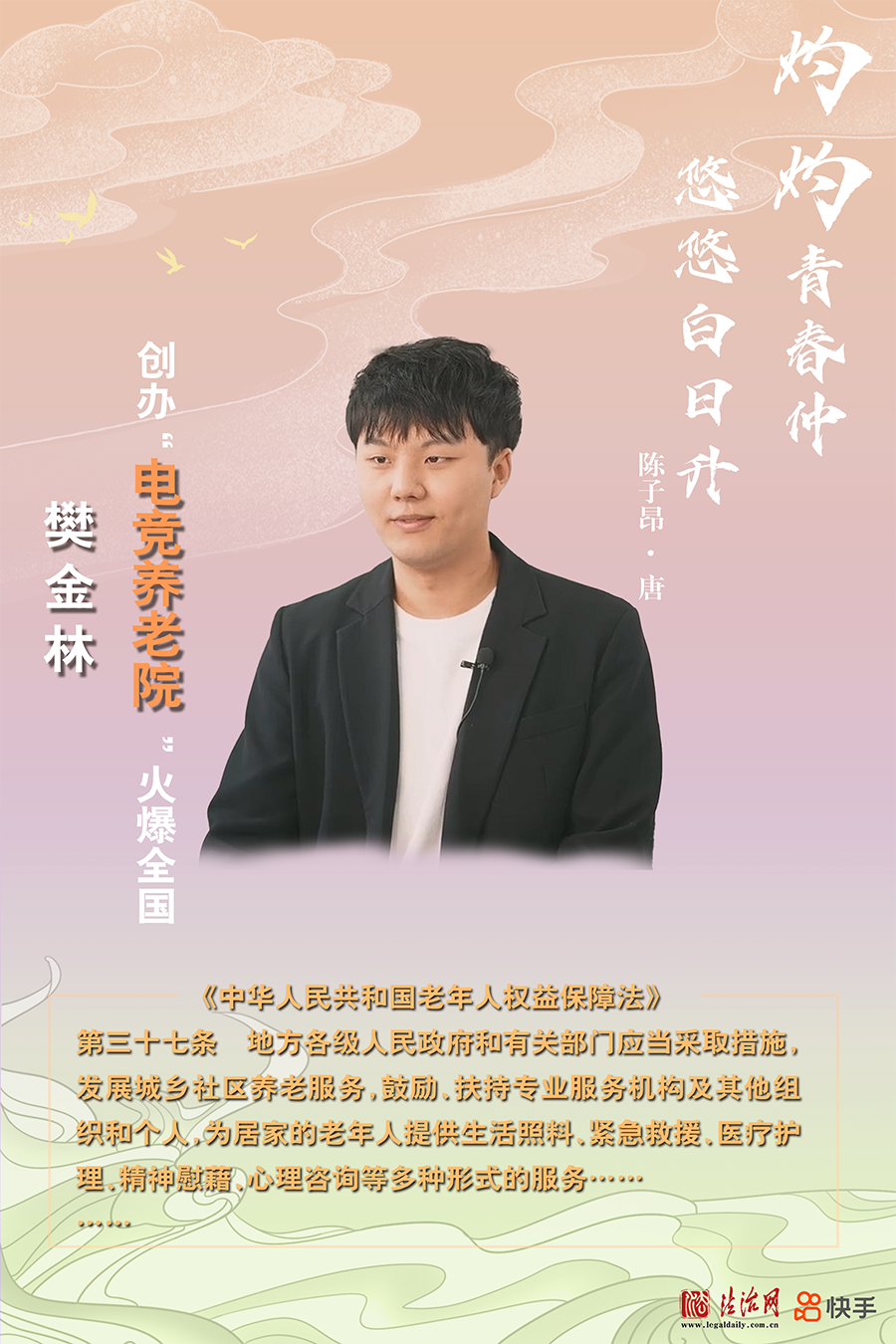 1997年出生的河南小伙樊金林(藝名:林燒)在河南省許昌市經營了中國首個“電競養老院”。他把年輕人里流行的電競、蹦迪、桌游等帶進養老院,還帶老人們一起拍攝短視頻,通過在社交平臺記錄他們日常生活的點滴,讓越來越多的人了解到“原來老年生活還可以這樣有趣”。