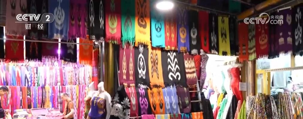 除此之外,本地布料市場也迎來了對艾特萊斯綢和定制成衣感興趣的游客。在這里,一套手工艾特萊斯綢的成衣價格從幾百元到上千元不等,店家還提供選布料、量身定做、成衣郵寄的一條龍服務。