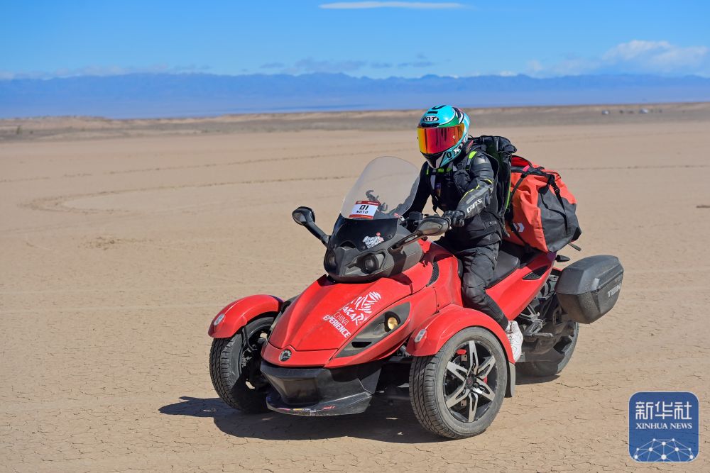 在新疆克拉瑪依市烏爾禾區(qū),車友在無人區(qū)體驗越野騎行(5月2日攝)。