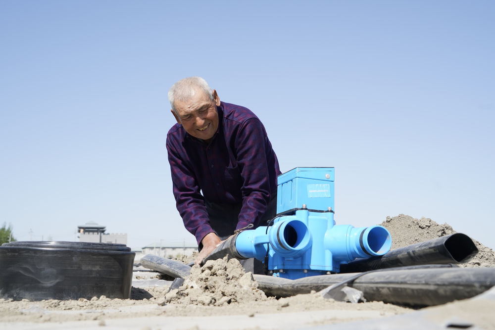 “我手下有七八個人,都是這里的村民,管著1500畝地?!惫吕@拉得意地說。棉花播種前后,他和同伴忙著安裝連接泵房和滴灌帶的一整套供水系統,由于每一個水閘都安有傳感器,哈衣繞拉用一臺手機就能監測灌溉水流量、控制閥門開關。