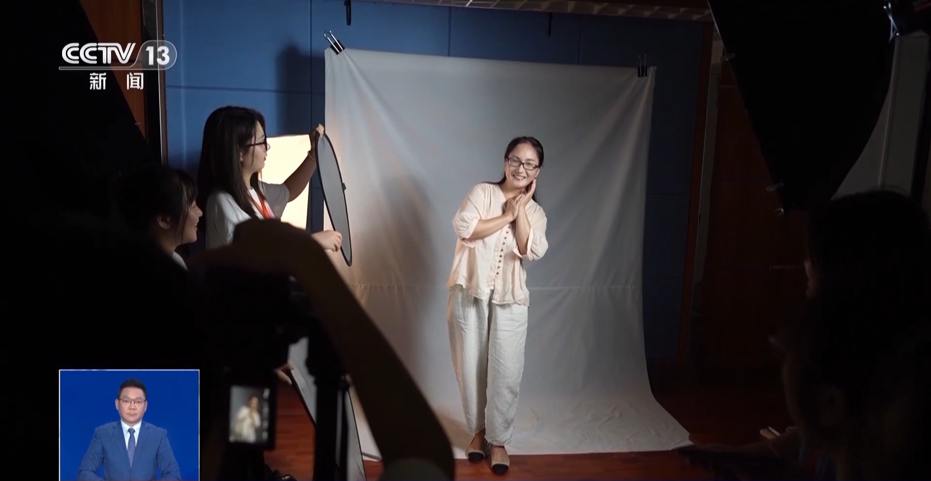 搭好影棚,測試完燈光和相機參數,第一位宿管阿姨被邀請到化妝區。平時很少打扮自己的宿管阿姨,被一群學生圍著,多少有點害羞。