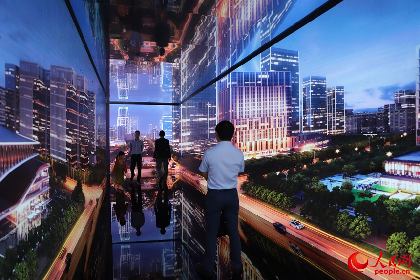 河北展區,雄安新區時空長廊打造出沉浸式、交互式創意體驗空間。人民網 劉森君攝