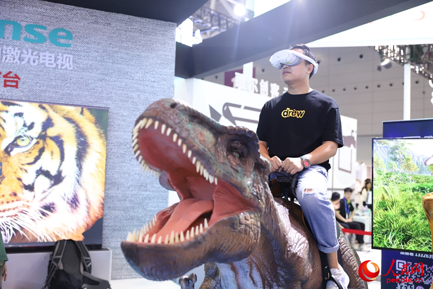 戴上VR設備,進入“侏羅紀時代”。人民網 劉森君攝