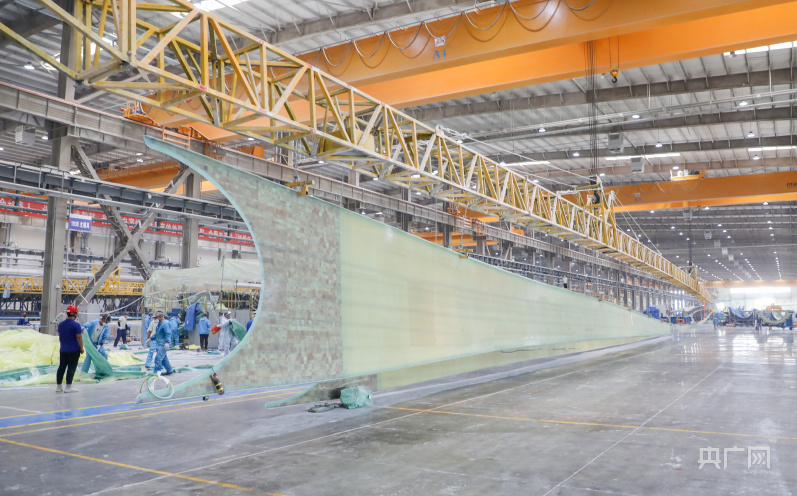 風(fēng)電葉片生產(chǎn)車(chē)間(央廣網(wǎng)見(jiàn)習(xí)記者 邵玉琴 攝)