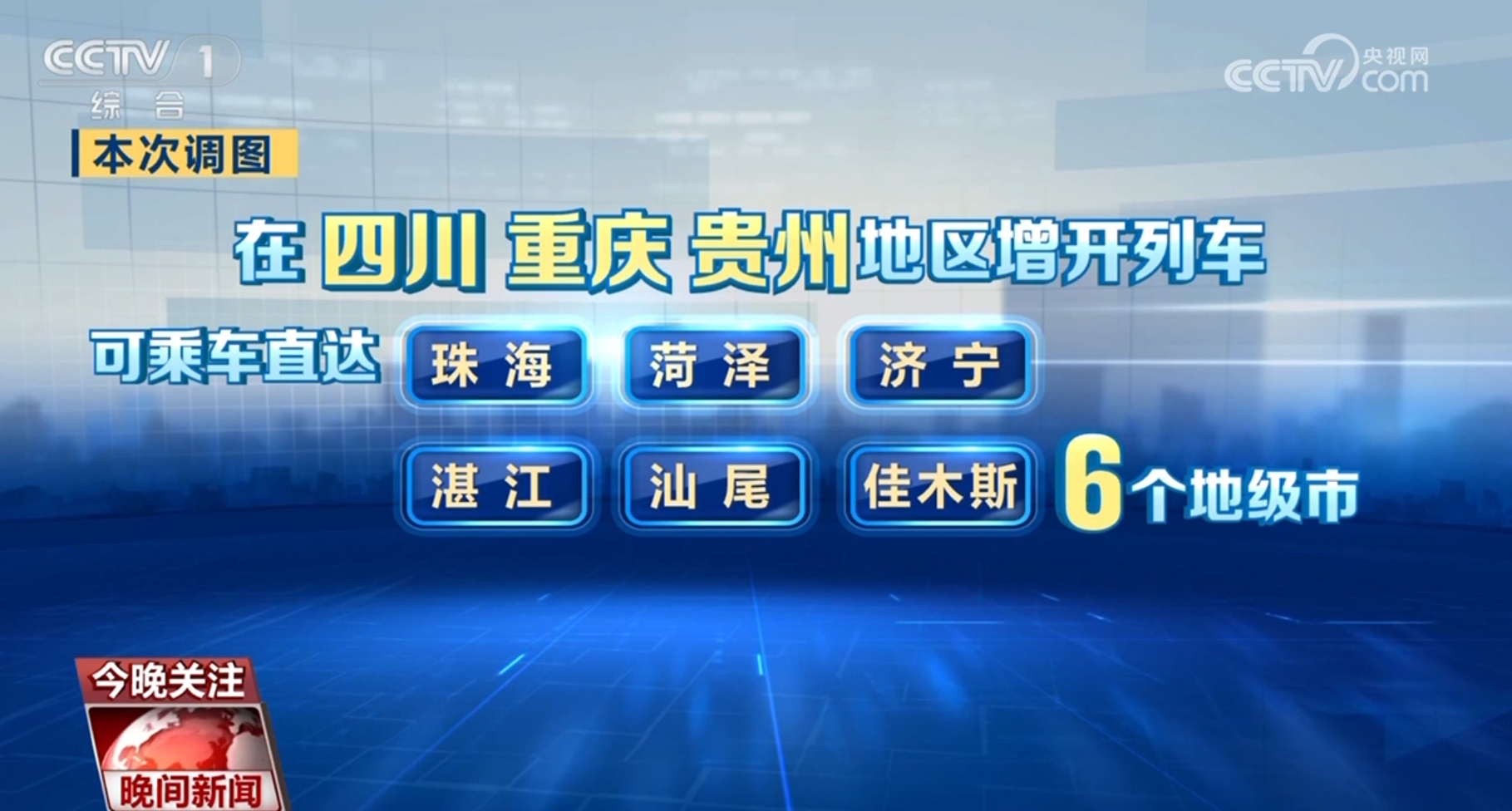 本次調圖,在鄭州、武漢、長沙等城市間增開復興號動車組標桿列車28列,進一步壓縮了中部地區省會城市間的時空距離;在四川重慶貴州地區增開列車,旅客從川渝貴三地可乘車直達珠海、菏澤、濟寧、湛江、汕尾、佳木斯6個地級市。此外,首開太原至深圳的動車組列車,旅行時間為8小時17分,較普速旅客列車壓縮了27小時57分。