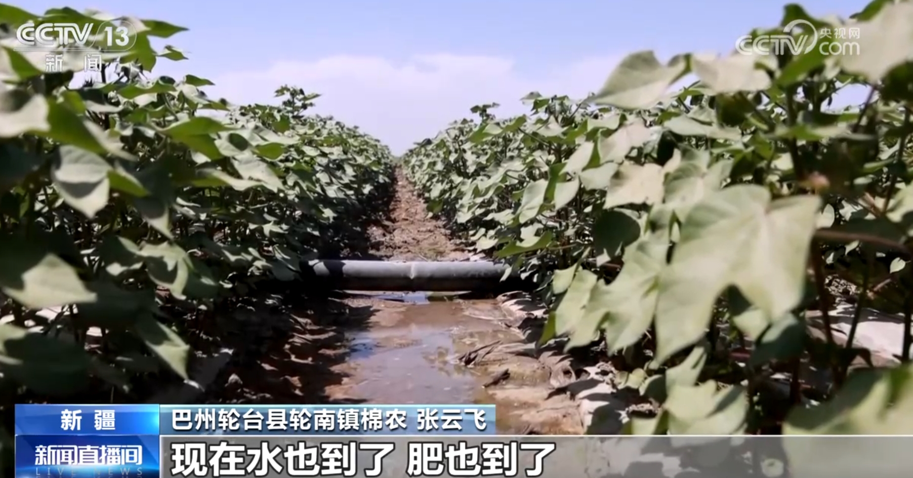 巴州輪臺(tái)縣輪南鎮(zhèn)棉農(nóng)張?jiān)骑w稱:“現(xiàn)在正是對(duì)水肥需求的高峰期,正好塔里木河的水來(lái)得非常及時(shí),現(xiàn)在水也到了,肥也到了,棉花長(zhǎng)勢(shì)非常好。”