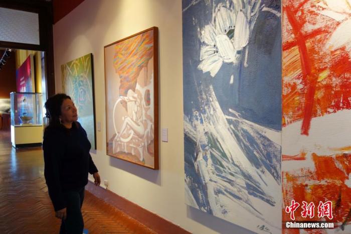資料圖:當(dāng)?shù)貢r(shí)間2016年11月18日,利馬,一名秘魯女觀眾觀看APEC“人與自然”藝術(shù)展。11月16日,為期23天的“感知中國(guó)走進(jìn)秘魯——APEC‘人與自然’藝術(shù)展”在秘魯國(guó)家考古人類(lèi)學(xué)歷史博物館舉辦。 中新社記者 莫成雄 攝