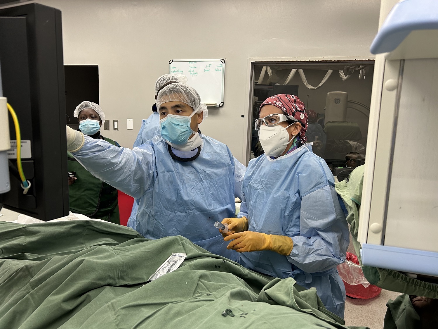 劉麗萍(左一)開展巴巴多斯第一例超聲造影技術
