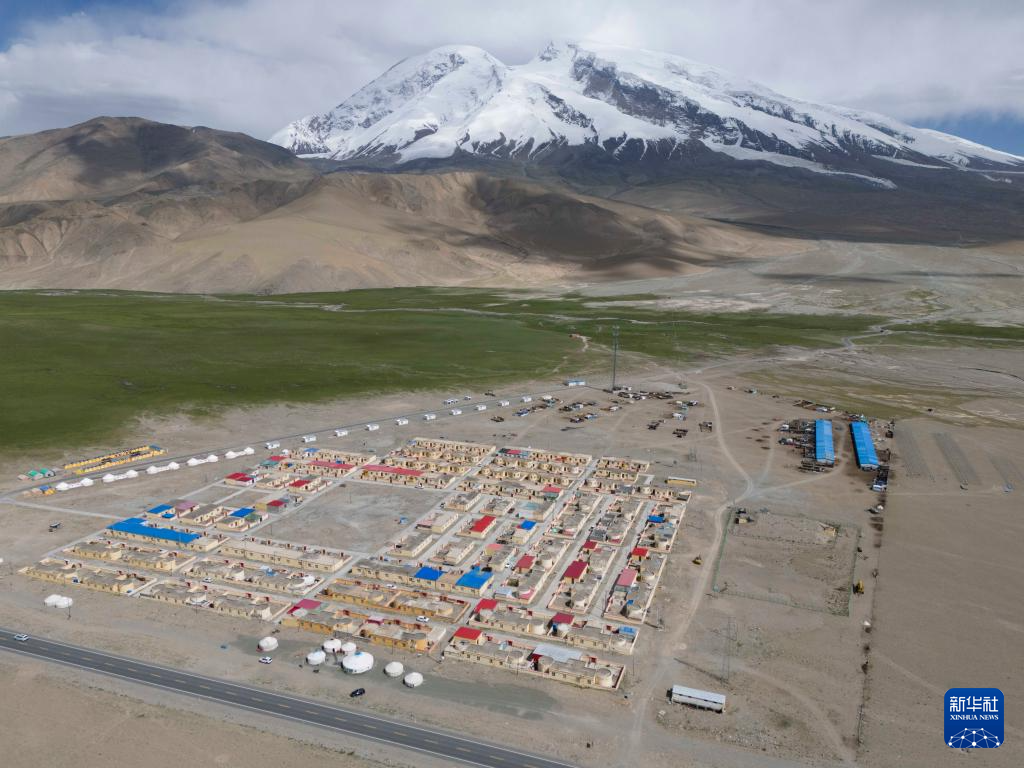 塔西巴伊家住新疆慕士塔格峰腳下的阿克陶縣布倫口鄉蘇巴什村三小隊(7月2日攝,無人機照片)。新華社記者 胡虎虎 攝