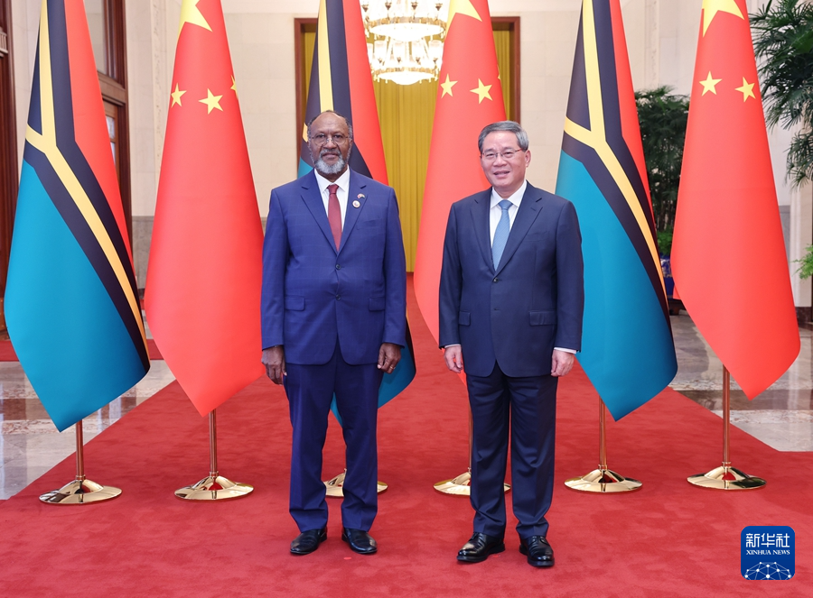 李強指出,中方愿同瓦方更好發揮經濟互補優勢,提升經貿、金融、漁業等領域合作水平,高質量實施好基礎設施重點項目,推動兩國互利合作取得更多成果,中方愿進口瓦方更多優質農產品。雙方要進一步便利人員往來,加強青年、教育、醫療衛生、文旅、地方等交流合作,推動兩國友好事業持續發展。中瓦同為“全球南方”成員,要加強多邊領域協作,不斷提升發展中國家在全球治理體系中的代表性,促進國際公平正義,維護發展中國家共同利益,攜手應對氣候變化等全球性挑戰。中方愿同瓦努阿圖等太平洋島國加強氣候政策交流合作,共同維護《聯合國氣候變化框架公約》及其《巴黎協定》的原則和制度安排。