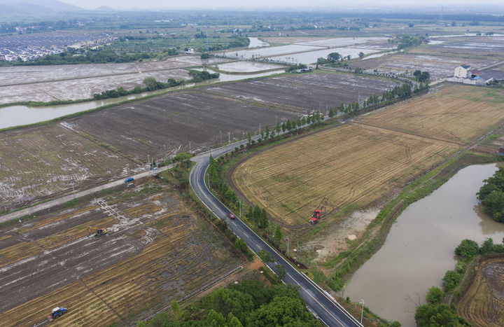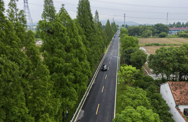 在浙江省諸暨市趙家鎮上京村拍攝的改造提升后的縣道(2024年6月4日攝,無人機照片)。新華社記者 徐昱 攝