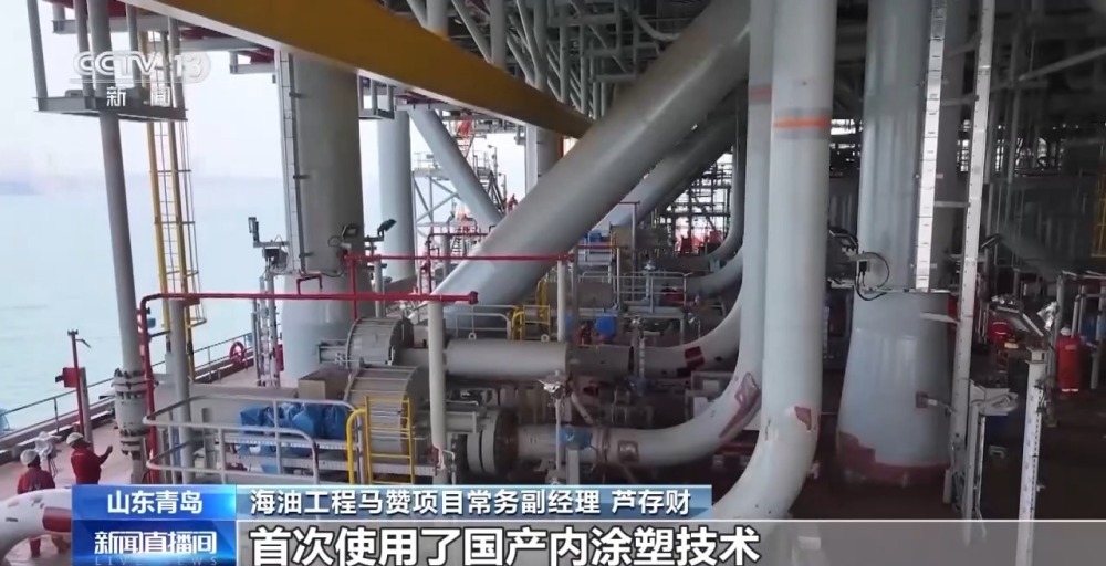 海油工程馬贊項目常務(wù)副經(jīng)理 蘆存財:我們現(xiàn)在看到的是36寸原油外輸管線,首次使用了國產(chǎn)內(nèi)涂塑技術(shù),解決硫化氫高的同時,實(shí)現(xiàn)了25年的長期安全服役。