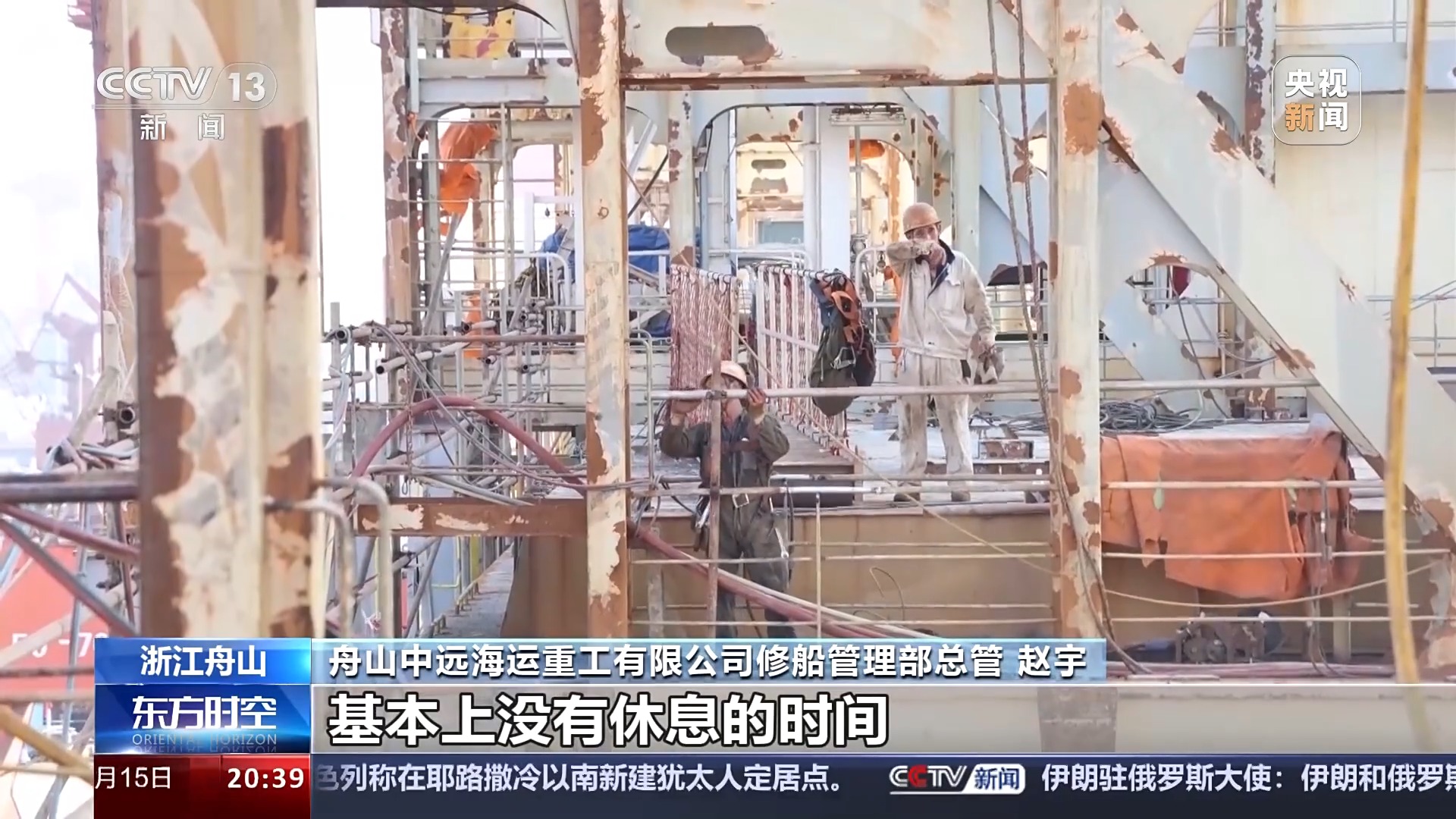 舟山中遠(yuǎn)海運(yùn)重工有限公司修船管理部總管 趙宇:到目前為止,我個(gè)人負(fù)責(zé)的船只,走一條來(lái)一條,基本上沒(méi)有休息的時(shí)間。對(duì)公司來(lái)說(shuō)業(yè)務(wù)增加了、效益好了,那對(duì)我們個(gè)人來(lái)說(shuō),個(gè)人的錢包就鼓了。