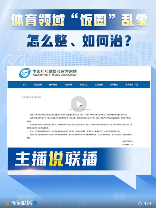 這兩天,中國(guó)乒協(xié)、中國(guó)體操協(xié)會(huì)相繼發(fā)聲,譴責(zé)體育領(lǐng)域的“飯圈”亂象。這一亂象到底該怎么整?如何治?點(diǎn)擊視頻↓↓↓