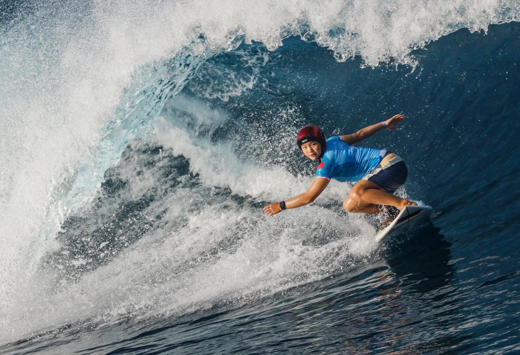 8月1日,中國選手楊思琪在巴黎奧運會女子沖浪項目第三輪比賽中。新華社記者 馬平 攝