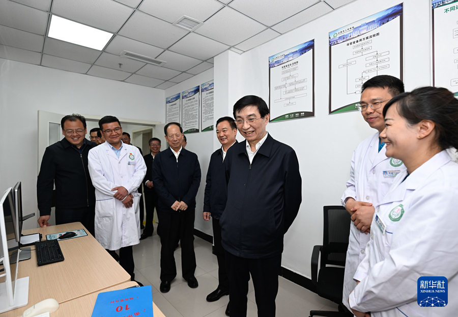 中共中央政治局常委、全國(guó)政協(xié)主席王滬寧到拉薩、山南就對(duì)口援藏等工作開(kāi)展情況進(jìn)行調(diào)研。這是8月27日,王滬寧在山南市人民醫(yī)院調(diào)研。新華社記者 申宏 攝