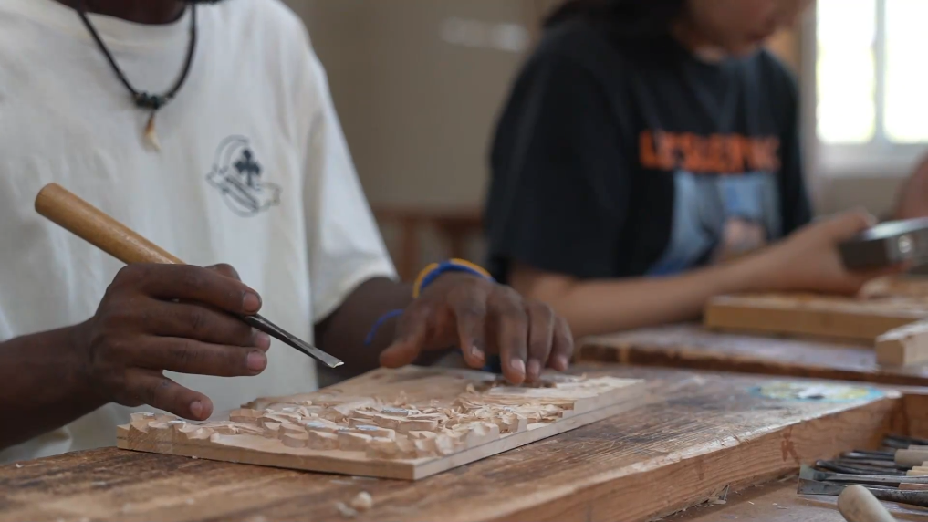 目前該學校共38名留學生,來自剛果(布)的許漫文就是其中之一。他告訴記者,來到中國后,他發(fā)現(xiàn)自己值得學習的東西有很多。他的夢想就是在畢業(yè)的時候成為一名木雕大師,將中國的木雕技藝和家鄉(xiāng)的文化融合起來。