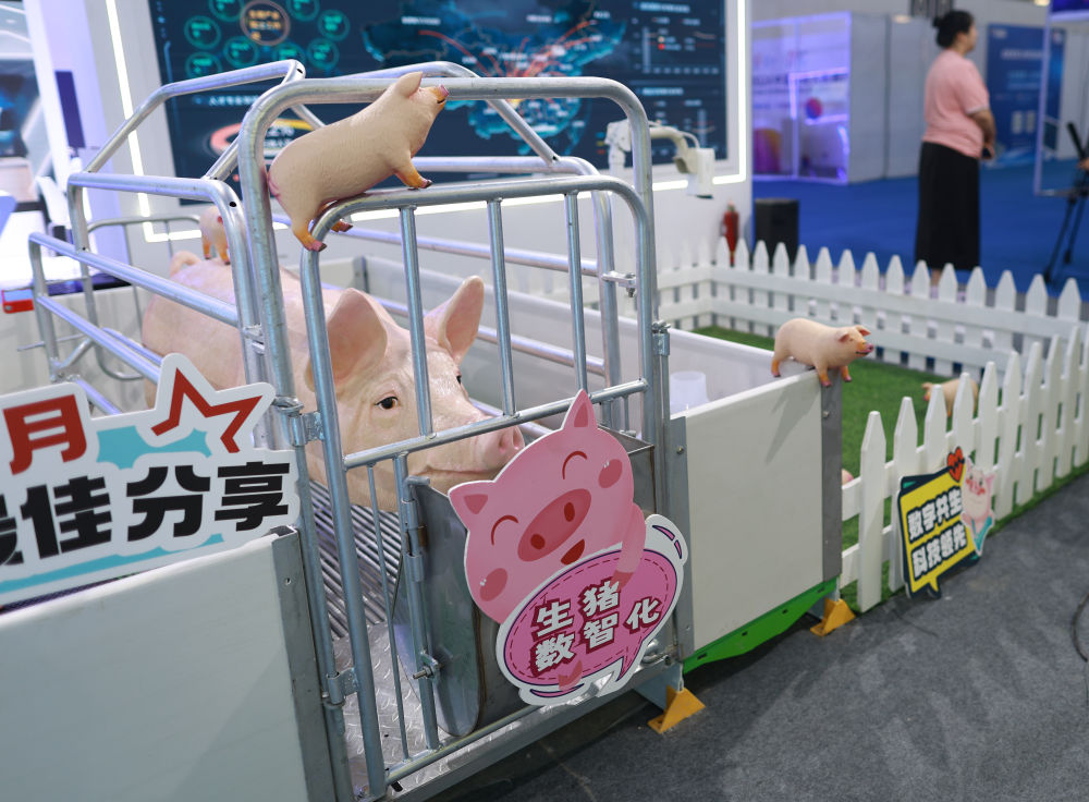 8月28日,觀展者在2024中國國際大數據產業博覽會現場參觀智能生豬全產業鏈數智化服務總平臺模型。