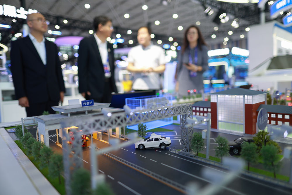 8月28日,觀展者在2024中國國際大數據產業博覽會現場參觀智能自動駕駛系統。