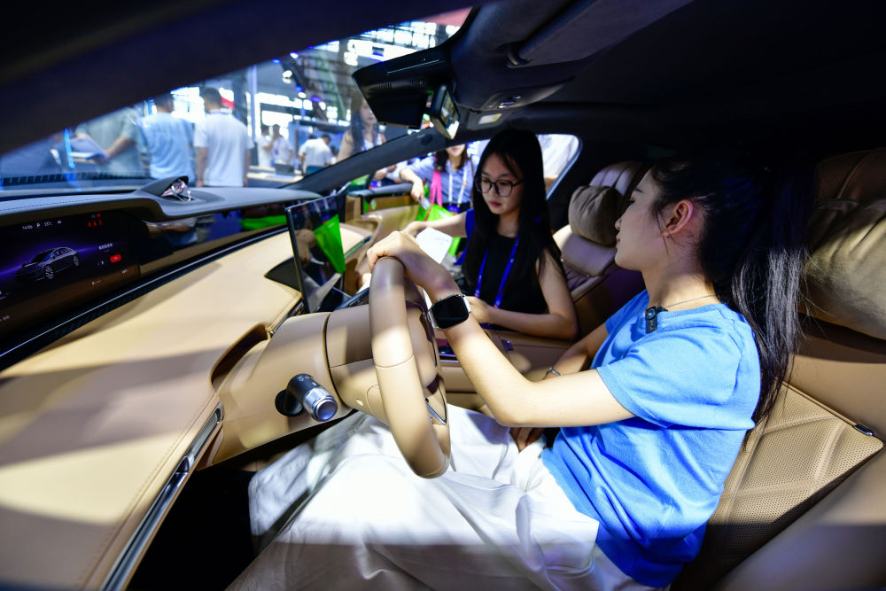 8月28日,觀展者在2024中國國際大數據產業博覽會現場參觀智能汽車。